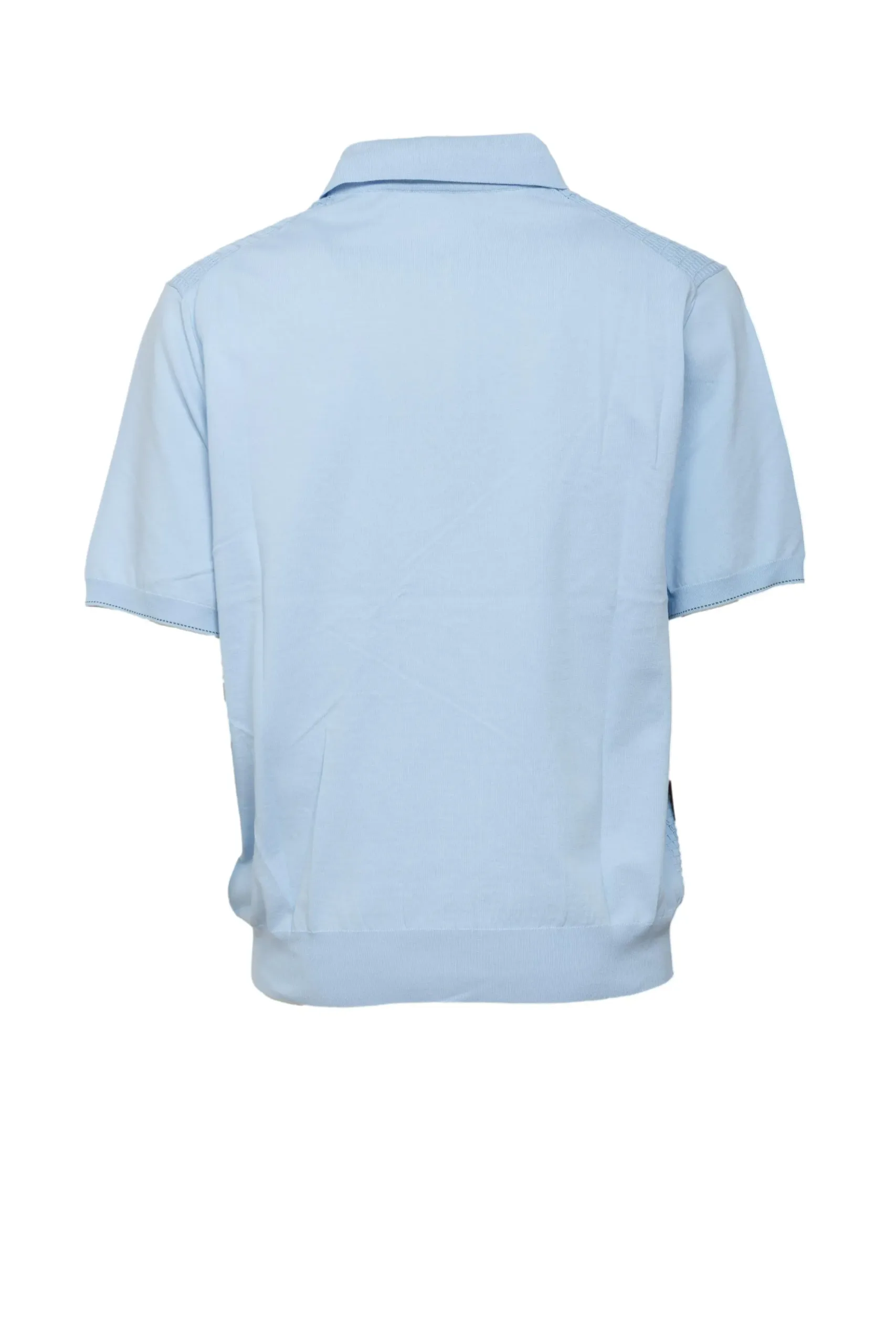 Primo Imperatore Men’s Light Blue Textured Half-Zip Polo – 100% Cotton